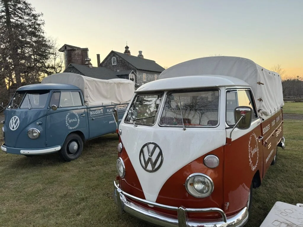Meet Isabel, our charming vintage 1957 VW transporter, and Clementine, her vibrant 1967 counterpart Fully restored and ready to roll, these two flower trucks are spreading the joy of blooms far and wide, one stop at a time!